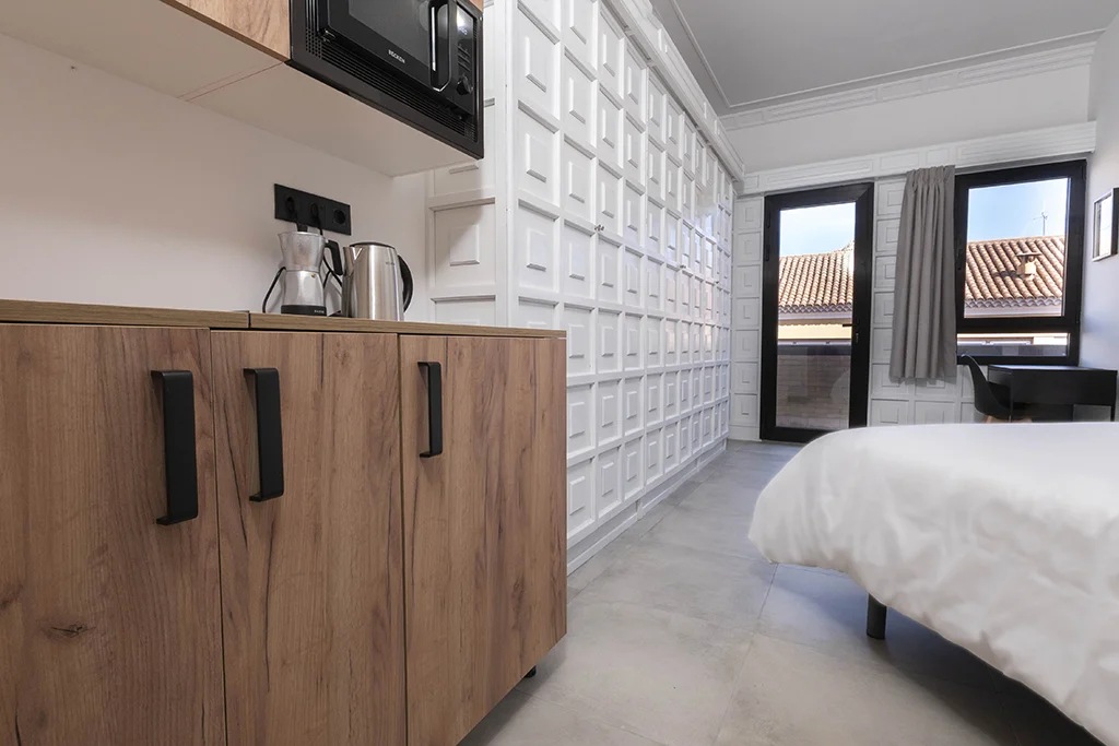 Mondalón04/02/2025 Publicado por sistemas@3commarketing.com el 04/02/2025 Categorías Estándar Fechaº04/02/2025 Planta PrimeraTufia19,20 m²Max. 2 personasRESERVAR Cama1,35 mts.Armario✔Baño privado completo✔Mesa de trabajo✔Punto de conexión✔ Microondas✔Cafetera✔Fregadero✔Nevera mini bar✔Hervidor✔ Wifi y conexión por red✔Smart TV✔Servicio de limpieza semanal✔Balcón/Terraza✔Servicios comunes incluidos en el precioEspacio de CoworkingLimpieza de habitaciones una vez por semanaCocina en zona común totalmente equipadaRopa de cama y toallas Plancha en zona de lavanderíaAgua corrienteLuzWifi de alta velocidadServicios extras no incluidos en el precioLavandería mediante sistema de prepagoActividades grupales Compartir